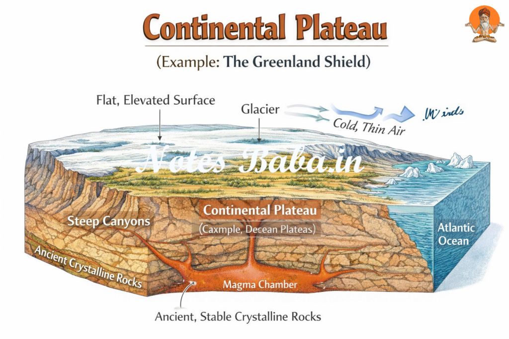 • Example :- Antarctica Plateau (East Antarctica), Maharashtra Plateau (India) etc.