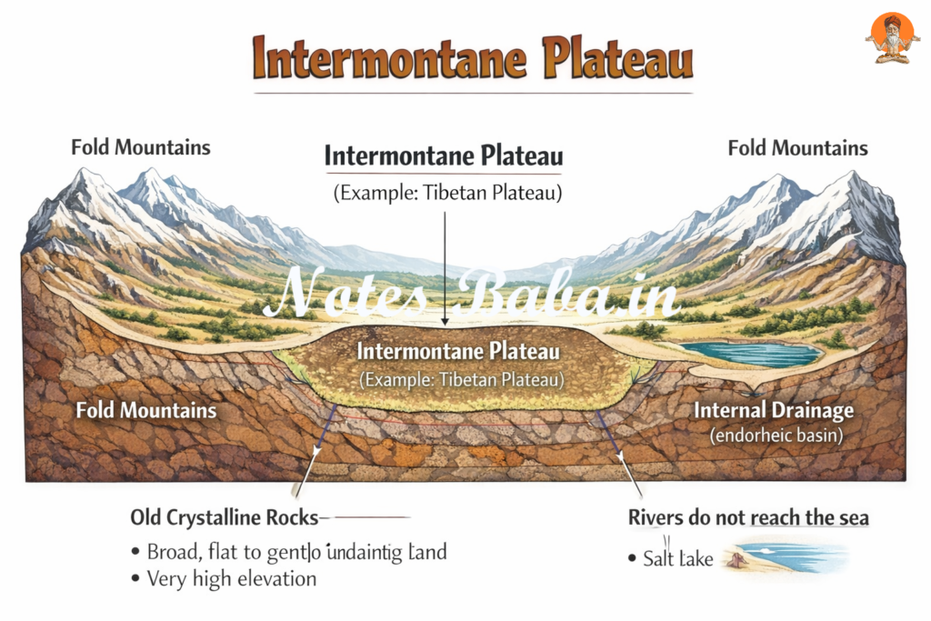 • Examples :- Bolivian Plateau (South America), Tibetan Plateau (surrounded by Himalayas and Kunlun Range) etc.