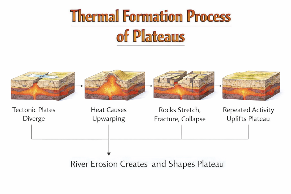 • Consequently, this uplift can lead to elevated flat areas known as plateaus.