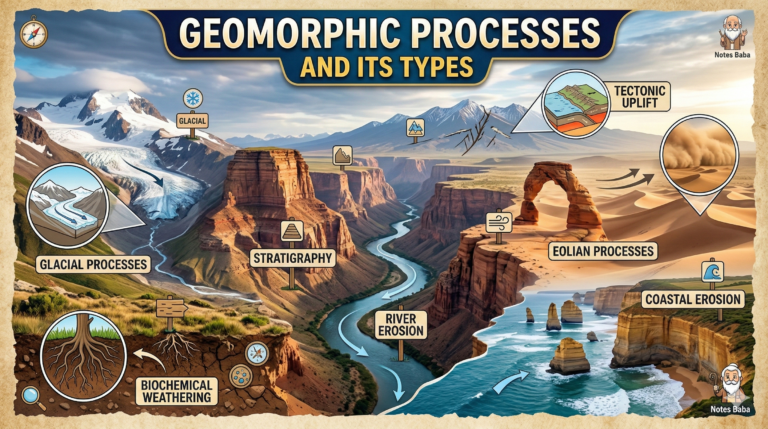 The Physical or Chemical changes brought about the landscape of the earth’s surface is termed as Geomorphic Processes. It is natural mechanism that shapes or…